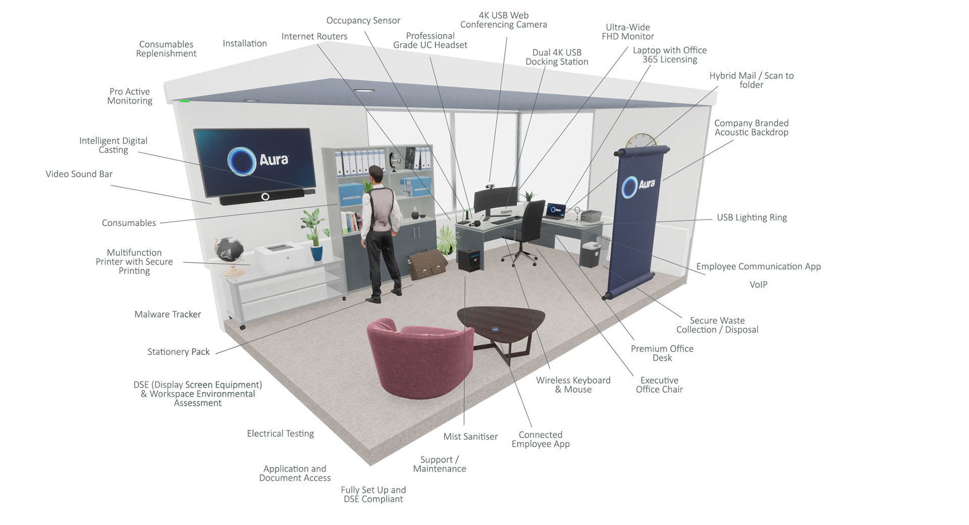 Aura needed some graphics made up to showcase their tech in various different settings. The scenes are set up in Unreal Engine and edited in Gimp or Photoshop. Each asset is made by me.
